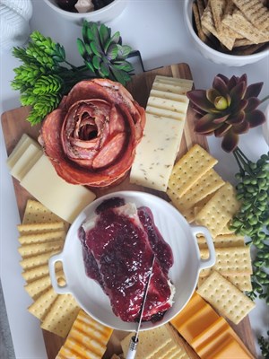 Made up of delectable artisan cheeses and cured meats, nuts, olives, spreads and specialty crackers!